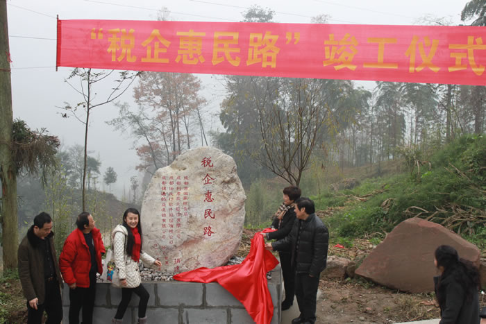 12月12日,由市局聯(lián)合社會(huì)力量,共同為“掛包幫”幫扶社區(qū)——崇州市文井江鎮(zhèn)馬家社區(qū)修建的“稅企惠民路”正式竣工并揭幕。市局黨組成員、紀(jì)檢組長(zhǎng)曾理金,機(jī)關(guān)黨委副書(shū)記、黨辦主任樓振光,崇州市國(guó)稅局黨組書(shū)記、局長(zhǎng)陳利強(qiáng)和成都利君實(shí)業(yè)股份有限公司、成都任我行軟件股份有限公司、成都錦通藥業(yè)連鎖有限公司等三家捐資企業(yè)代表出席了竣工揭幕儀式。